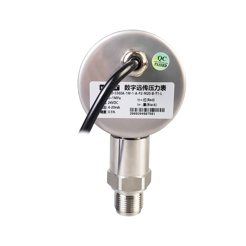 MD-S560數(shù)字遠(yuǎn)傳壓力表采用304不銹鋼外殼及接頭,防水電纜出線,防水等級IP65,具有非常廣泛的介質(zhì)適用性。